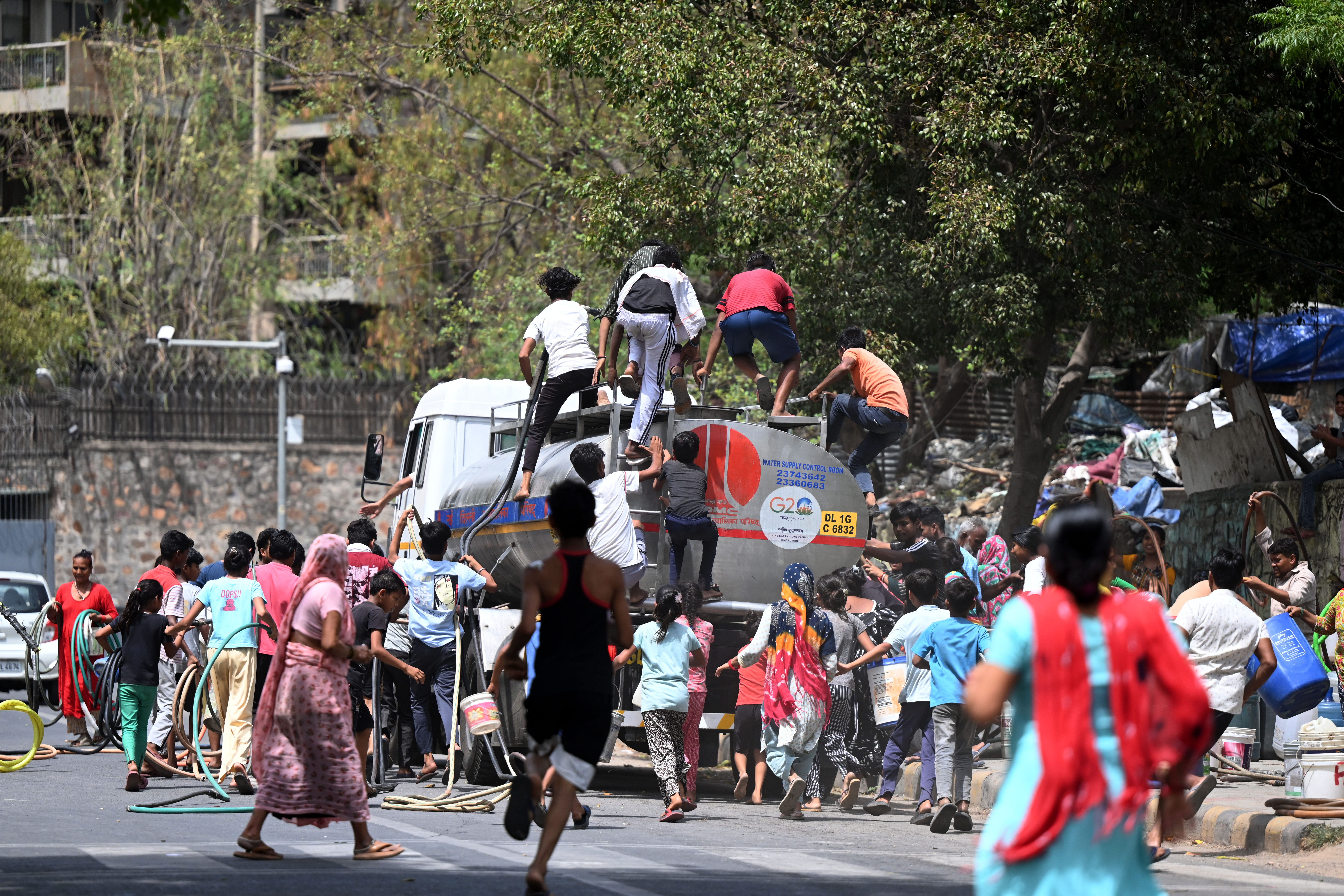 Many of the city’s slums have no running water, and as supplies have dwindled in the heat, the trucks that deliver water for a price have dwindled. Here’s Esha Mitra of CNN, describing the arrival of the water wagon in one neighborhood: