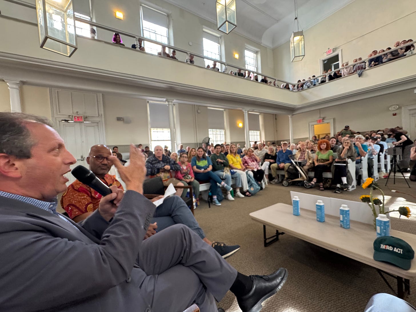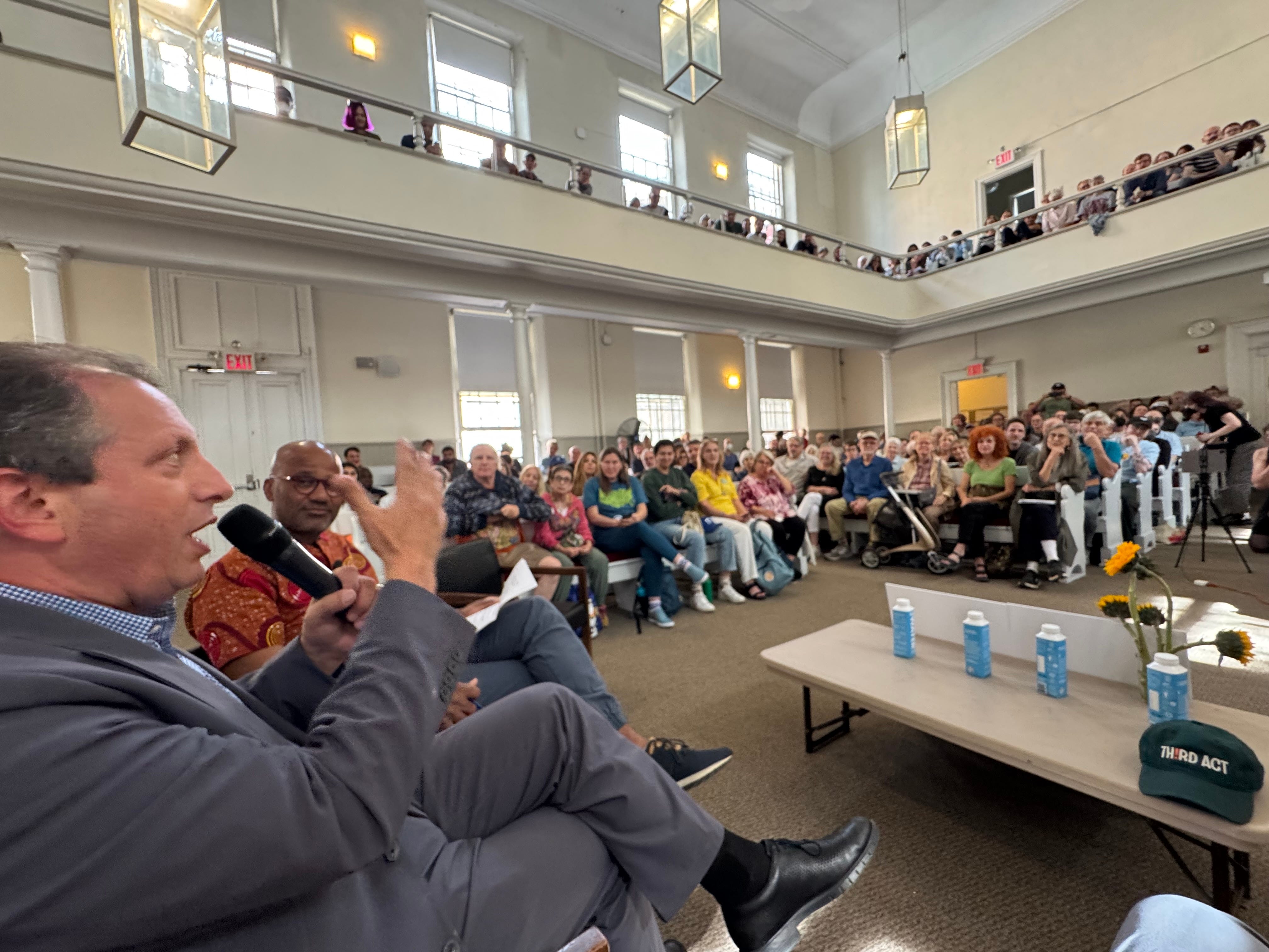 So many people and organizations helped make the day happen: Fossil Free Media, of course, with Jamie Henn and Deirdre Shelly leading an amazing crew; Solar United Neighbors, the Sierra Club, Mothers Out Front, Climate Revival, Green Faith, Dayenu, a hundred more. My colleagues at Third Act were absolutely crucial: here’s Deborah Moore and Anna Goldstein, who worked around the clock