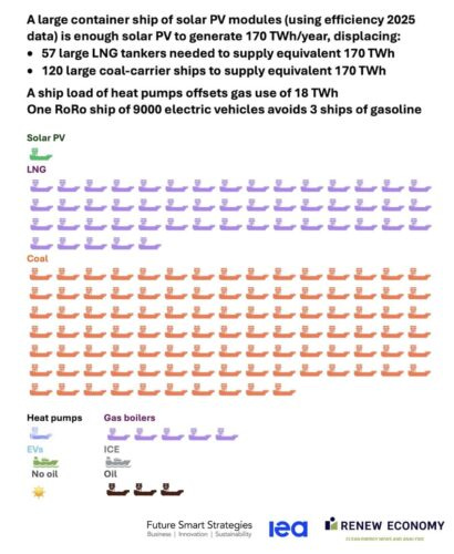 +Update on one of my fave statistics: a boatload of solar panels is no longer worth 100 boatloads of coal. Now it’s 120, not to mention 57 of LNG. If you’d like that in graphic form: