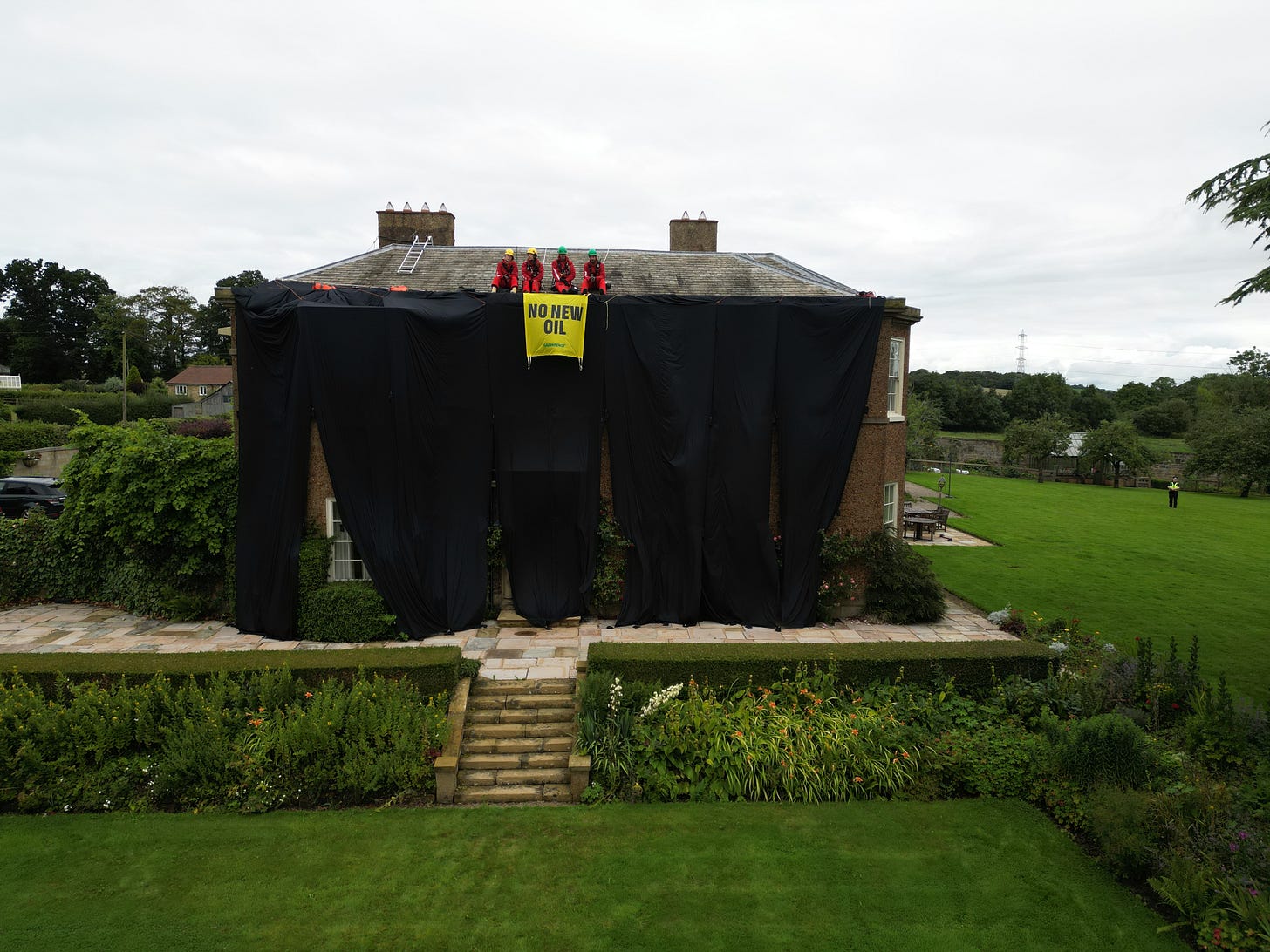 In response, Greenpeace UK decorated one of Sunak’s several (unoccupied) mansions with a black shroud yesterday
